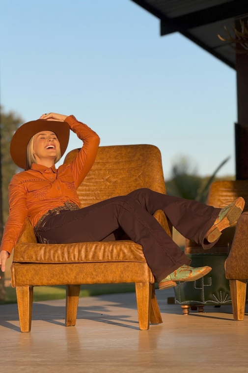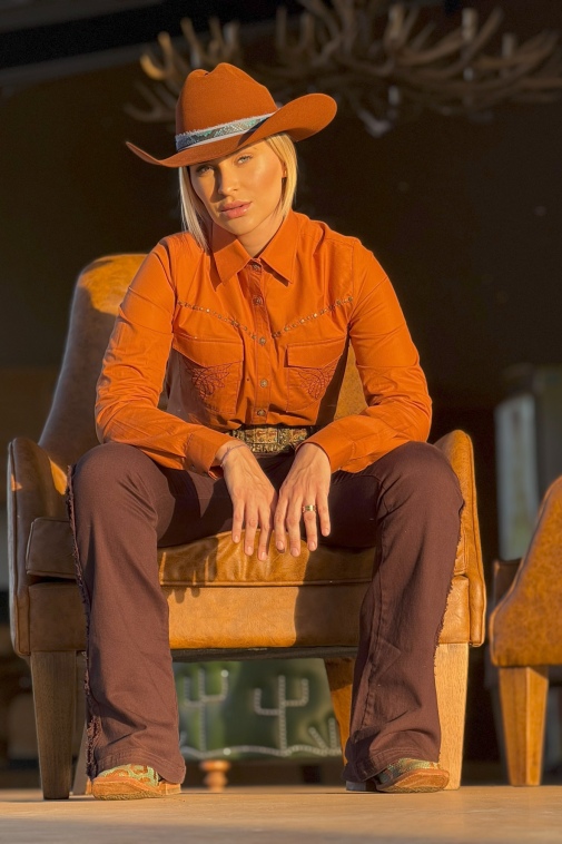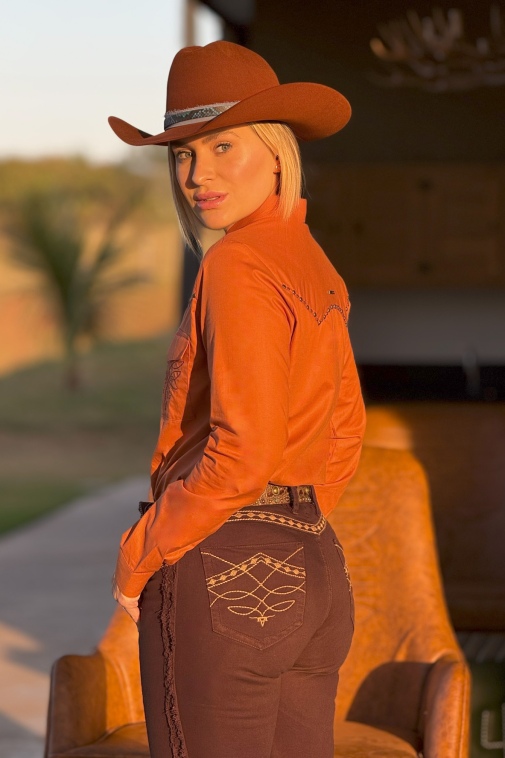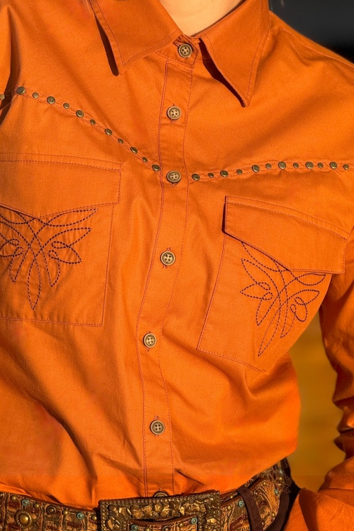 Camisa Feminina Manga Longa com Pespontos e Tachas