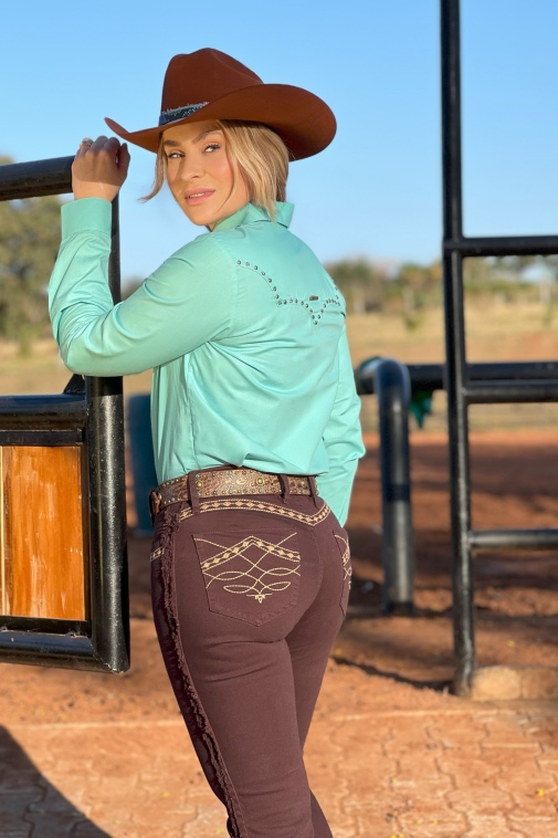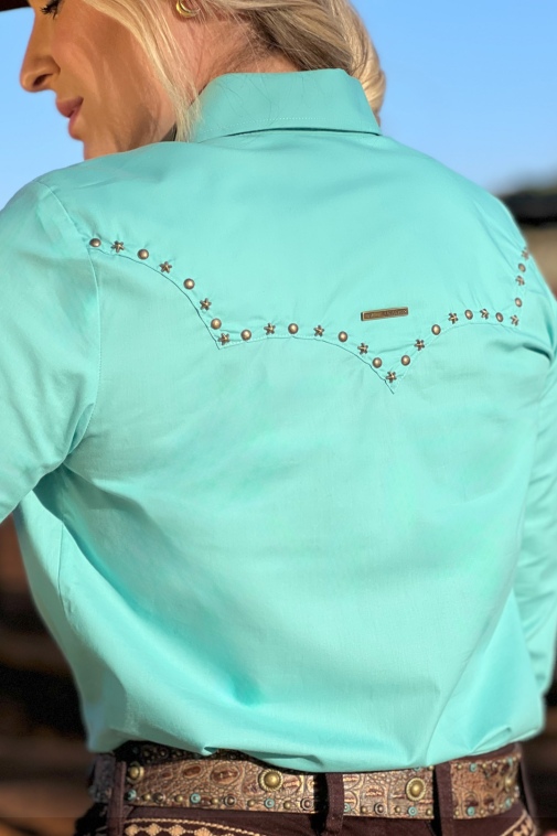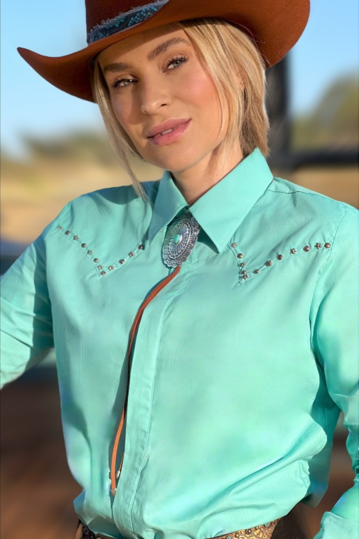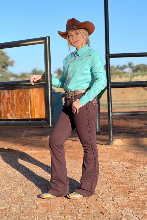 Camisa Feminina Manga Longa com Pespontos e Tachas