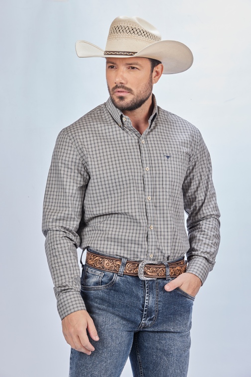 Camisa Masculina Manga Longa Custom Fit Xadrez