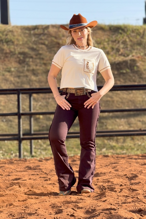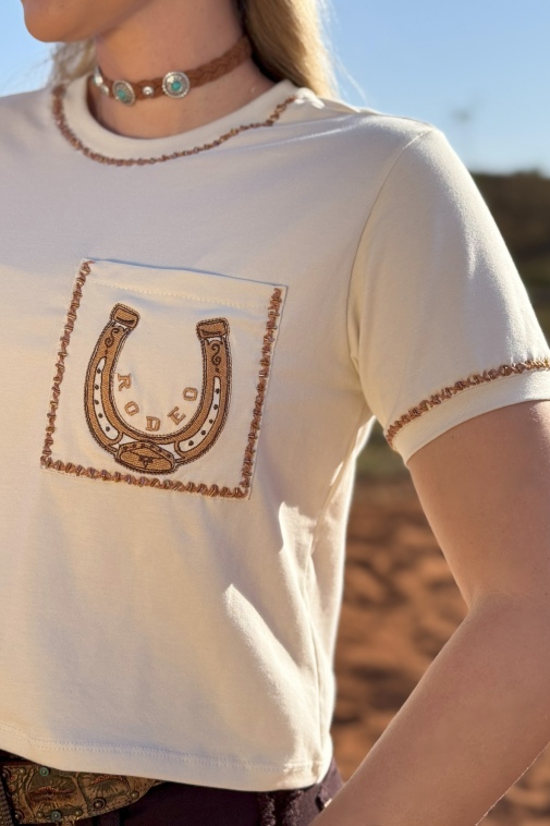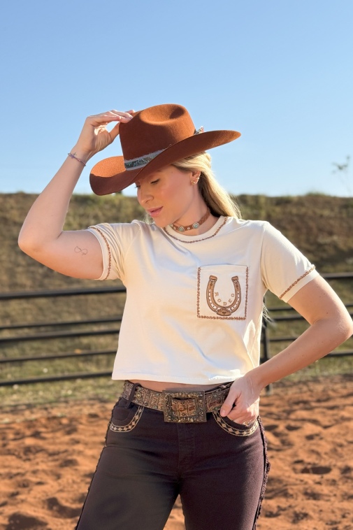T-Shirt Feminina Cropped Bordada